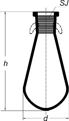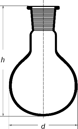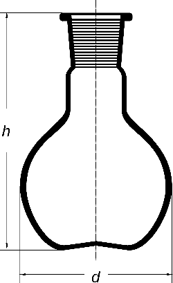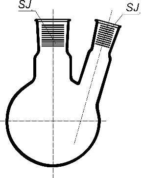 Kolba destylacyjna, kulista, dwuszyjna, jedna szyjka prosta, ze szlifem