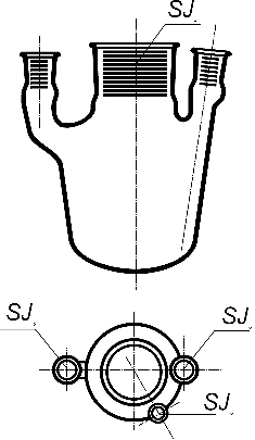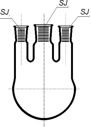 Kolba destylacyjna, kulista, trójszyjna, prosta, ze szlifem