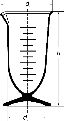 Cylinder miarowy ze skalą, z sześciokątną podstawą, z wylewem, niski, brązowa podziałka, bez legalizacji