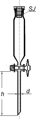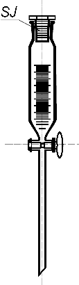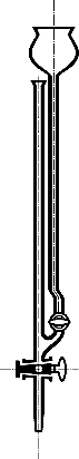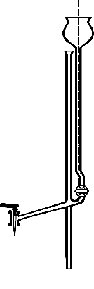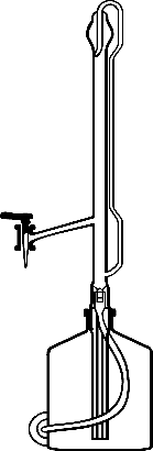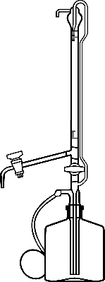 Aparat do miareczkowania Pelleta, z bocznym kurkiem, z automatyczną regulacją poziomu zerowego, z butlą na szlif 29/32, z zaworem odcinającym pomiędzy butlą a biuretą, z gumową gruszką